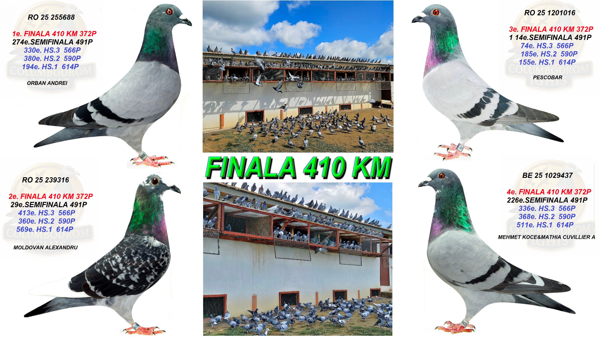 - După etapa finală,Derby porumbeii vor fi scoși la licitație pe un site de renume.